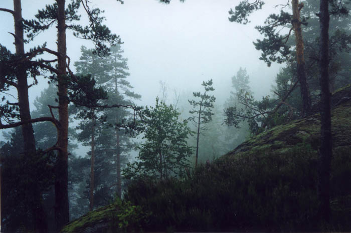 А у меня взгляд вверх не уходит. Наоборот, вдаль, к туманным соснам.