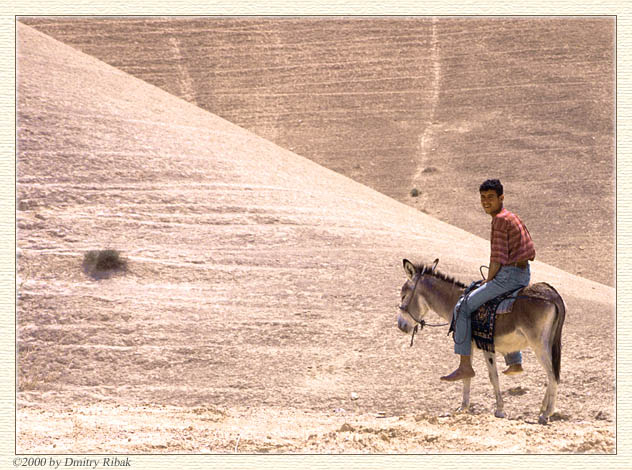 Давиду: Пятна - это кустарник такой там растет. Как называется - не знаю, может быть и саксаул. :) Что касается второго вопроса - фотограф просто ехал на машине через пустыню, увидел бедуина (а бедуин фотографа).. Так что - смело можно сказать, что бедуин позирует. Место, с которого смотрит фотограф, далеко не всегда должно присутствовать в смысловом ряду снимка. Скажем так - в подавляющем большинстве фотографий оно совершенно не важно. Стоит фотограф, висит или едет на верблюде с балалайкой (треногой) на спине - не имеет никакого значения. Фотограф почти всегда выполняет роль кинооператора в кино. Чем меньше его замечаешь, тем сильнее эффект присутствия. Фотографии, подобные тем, которые Вы описываете, на самом деле довольно редки. Они могут быть удачными, с продуманной композицией, а могут изображать, кроме всего прочего, и "уши фотографа"... ;-))