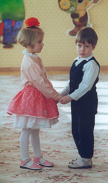 Ориентировочно февраль 1995 г. Утренник в одном из московских детских садов. Освещение смешанное с преобладанием естественного.