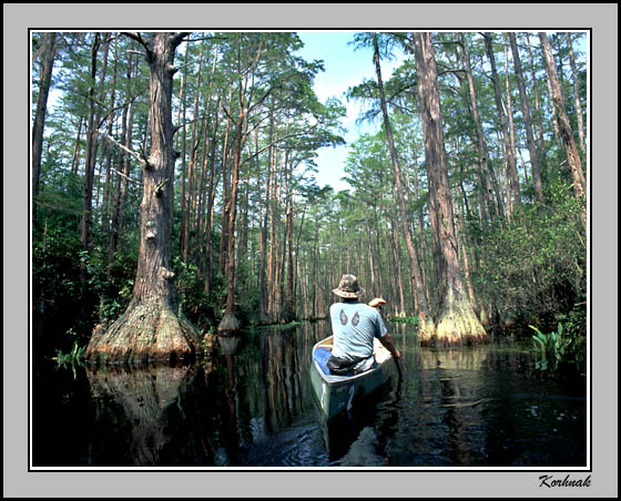 (4, 18) Bob, I wear a hat to hide the horns. This is really not a river, but the Okefenokee Swamp, although it is the headwaters of the Suwannee River. This particular location is the trail to Minnie▓s Lake. I▓m singing ⌠Proud Mary■ by Creedence Clearwater Revival. Da, Tixonoy is a pain scarring away the tender ass before I can bite down. One day my great big, huge, gigantic, enormous, teeth and his puny pipe are going to meet in an epic clash. :-)
