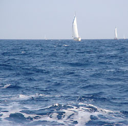 Утро было замечательным - дул постоянный ровный ветер, причем настолько сильный, что я начал мечтать о тазике с гидравлическим отклонением пера руля - это позволяет двигаться на приличной скорости и с наклоном корпуса яхты без выхода на глиссирование. Шкипер болтался на камбузе, готовя себе некое подобие греческого салата, товарищ, заведомо привязавшись к рейлингу, безмятежно дрых на коврике у мачты… На горизонте появилось небольшое низкое облачко.. я решил изобразить из себя бывалого морского волка, позвал шкипера, ткнул в него пальцем и веско произнес: